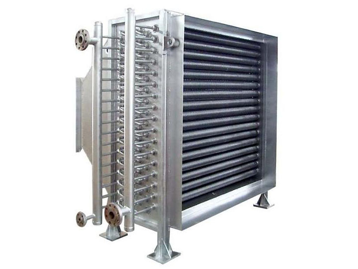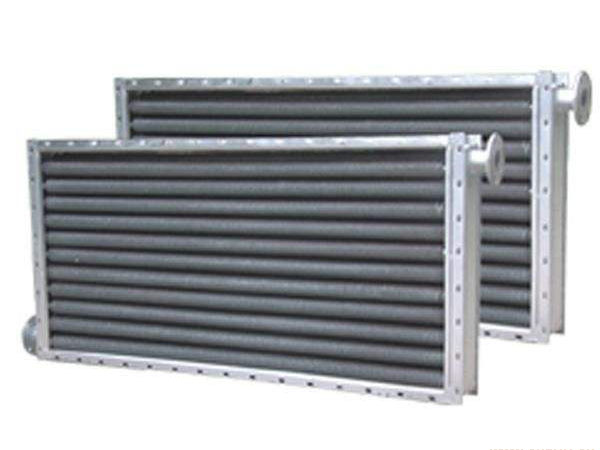 翅片式換熱器主要用于干燥系統中空氣加熱,是熱風裝置中的主要設備,散熱器采用的熱介質可以是蒸汽或熱水,也可用導熱油,蒸氣的工作壓力一般不超過0.8Mpa,熱空氣的溫度在150℃以下。