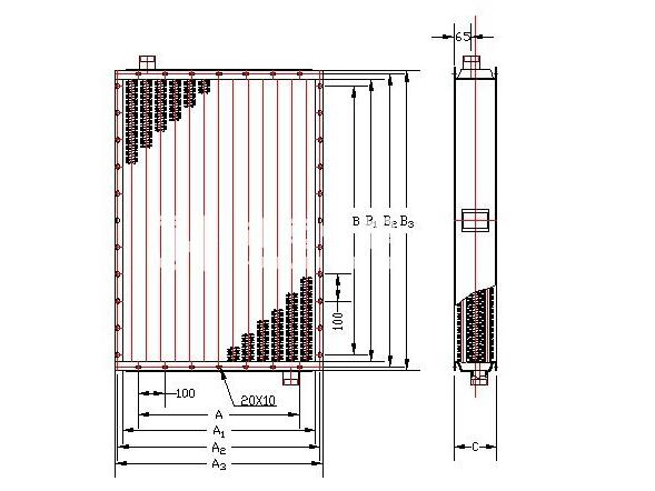 1、結構緊湊:采用鋼管鋁翅片管束,接觸緊密,散熱性能好;